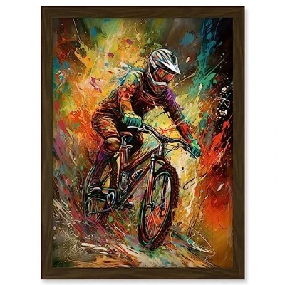 Artery8 Mountain Biker Paint Splat Portrait Action Shot Artwork Framed A3 Wall Art Print