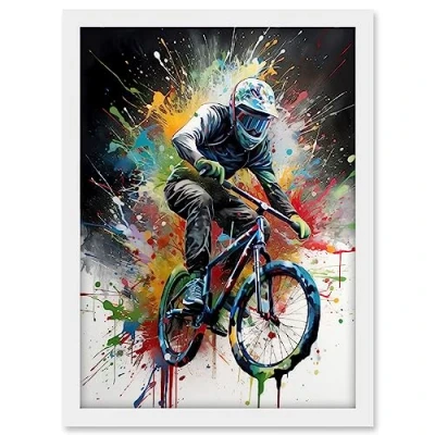 Artery8 Mountain Biking Extreme Sport Paint Splat Portrait Artwork Framed A3 Wall Art Print