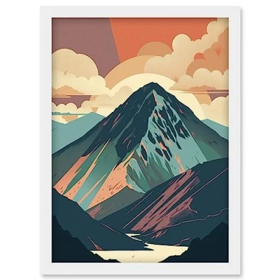 Artery8 Mountain Hill Sunrise Boho Landscape Illustration Artwork Framed Wall Art Print A4