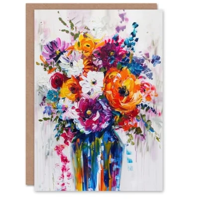 Artery8 Multicoloured Flower Bouquet in Vase Oil Painting Greeting Birthday Card Him Her All Blank