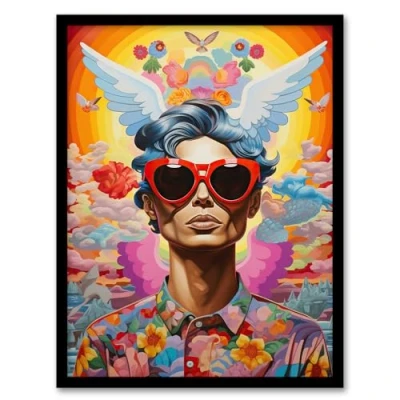 Artery8 Multicoloured Magnificent Maximalist Modern Day Greek God Hermes Art Print Framed Poster Wall Decor 12x16 inch