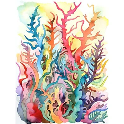 Artery8 Multicoloured Seaweed Plant Folk Art Large Wall Poster Print Thick Paper 18X24 Inch