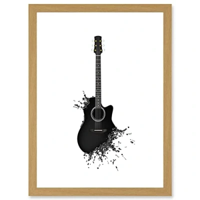 Artery8 Music Illustration Guitar Watersplash Bubble Effect A4 Artwork Framed Wall Art Print