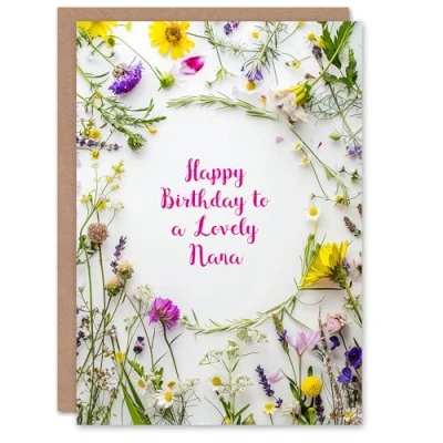 Artery8 Nana Happy Birthday Card Simple Spring Meadow Wildflowers Floral For Her Greeting