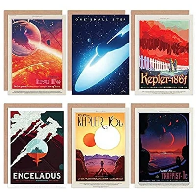 Artery8 NASA Space Travel Tour Lava Life Kepler 186f 16b Enceladus Trappist 1e All Occasions Various Assorted Blank Greeting Cards With Envelopes Pack of 6