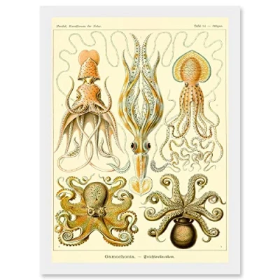 Artery8 Nature Ernst Haeckel Octopus Biology Sea Underwater A4 Artwork Framed Wall Art Print