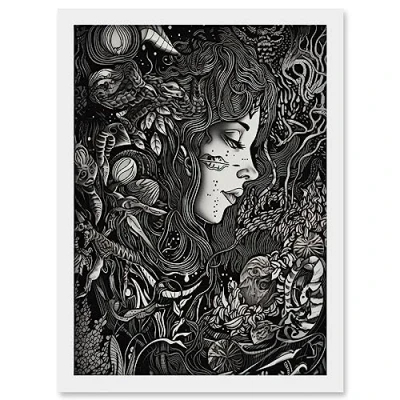 Artery8 Nature Goddess Black and White Modern Illustration Artwork Framed Wall Art Print A4