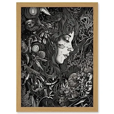 Artery8 Nature Goddess Black and White Modern Illustration Artwork Framed Wall Art Print A4
