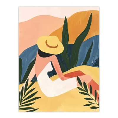 Artery8 Nature Lover Sunbathing Woman Abstract Painting Living Room Large Wall Art Poster Print Thick Paper 18X24 Inch