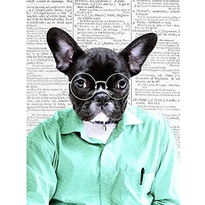 Artery8 Nerdy French Bulldog Upcycle Style Dictionary Art Print Canvas Premium Wall Decor Poster Mural