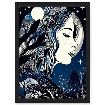 Artery8 New Moon Goddess Winter Moonlit Witchy Forest Starry Night Mother Nature Boho Patterns Artwork Framed A3 Wall Art Print