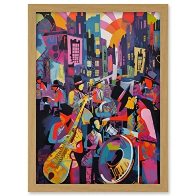 Artery8 New Orleans Jazz Festival Street Musicians Playing Music City at Sunset Abstract Modern Painting Artwork Framed A3 Wall Art Print