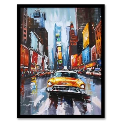Artery8 New York City Colourful Street Cityscape Taxi Cab Living Room Artwork Framed Wall Art Print A4