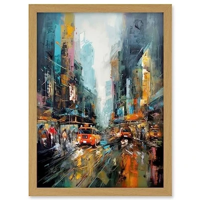 Artery8 New York City Rainy Day Abstract Action Cityscape Artwork Framed A3 Wall Art Print