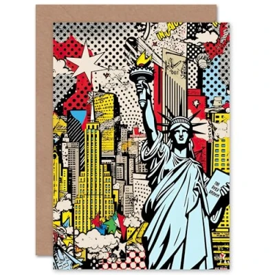 Artery8 New York City Skyline Pop Art American Dream for Him or Her Man Woman Birthday Thank You Congratulations Blank Greeting Card