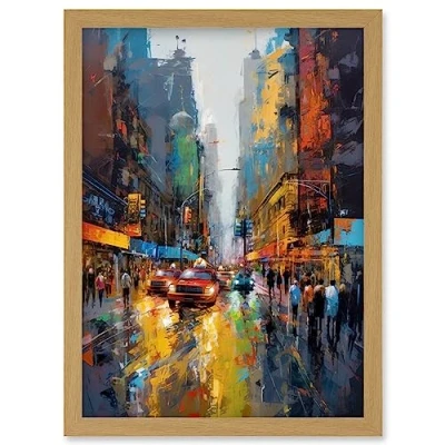 Artery8 New York City Street Taxi Traffic Modern Cityscape Artwork Framed Wall Art Print A4