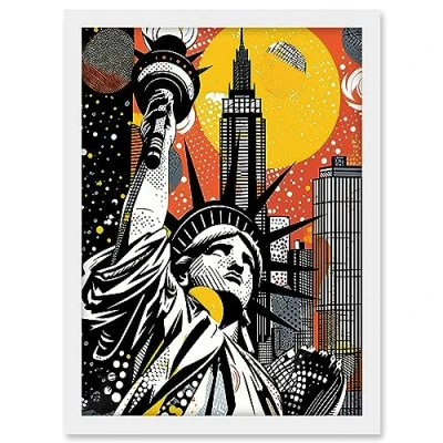 Artery8 New York Collage Halftone Pop Art Comic Book Statue of Liberty Skyscraper Abstract Artwork Framed A3 Wall Print