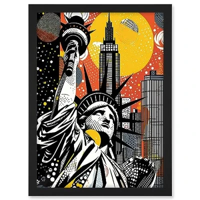 Artery8 New York Collage Halftone Pop Art Comic Book Statue of Liberty Skyscraper Abstract Artwork Framed A3 Wall Print