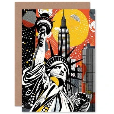 Artery8 New York Collage NYC Halftone Pop Art for Him or Her Man Woman Birthday Thank You Congratulations Blank Greeting Card