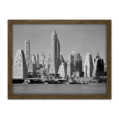 Artery8 New York From River Skyscrapers Vintage Photo Artwork Framed Wall Art Print 18X24 Inch
