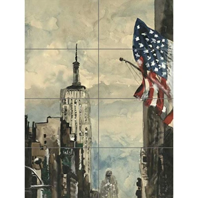 Artery8 New York Watercolour With Flag XL Giant Panel Poster (8 Sections)