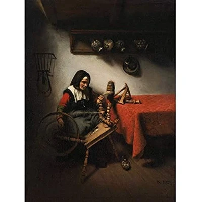 Artery8 Nicolaes Maes Old Woman Spinning Painting Art Print Canvas Premium Wall Decor Poster Mural
