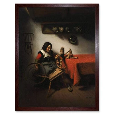 Artery8 Nicolaes Maes Old Woman Spinning Painting Art Print Framed Poster Wall Decor 12x16 inch