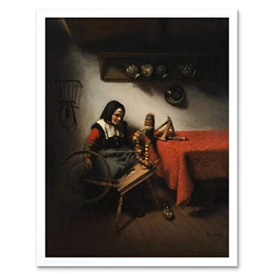 Artery8 Nicolaes Maes Old Woman Spinning Painting Art Print Framed Poster Wall Decor 12x16 inch