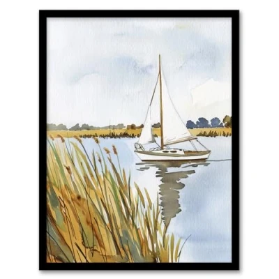 Artery8 Norfolk Broads England River Sailboat Watercolour Living Room Artwork Framed Wall Art Print A4