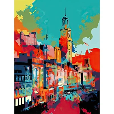 Artery8 Nottingham City England Cityscape Vibrant Abstract Large Wall Art Poster Print Thick Paper 18X24 Inch