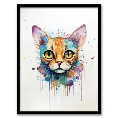 Artery8 Ocicat Lovers Gift Watercolour Pet Portrait Painting Artwork Framed Wall Art Print A4