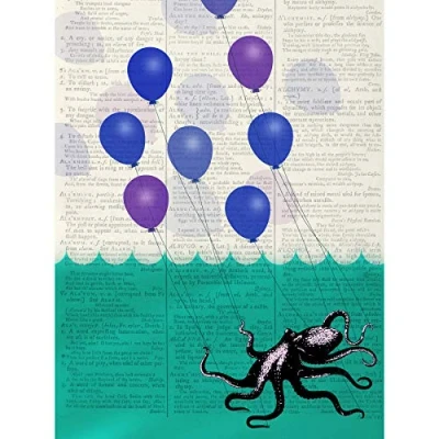 Artery8 Octopus Balloons Upcycle Style Dictionary Premium Wall Art Canvas Print 18X24 Inch