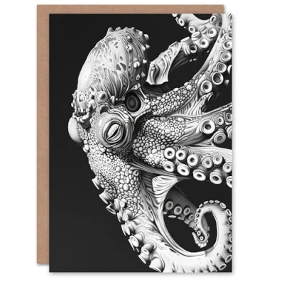 Artery8 Octopus Black White Drawing Ernst Haeckel Style Greeting Birthday Card Him Her All Blank