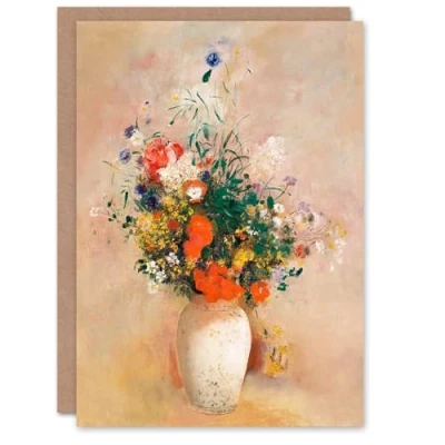 Artery8 Odilon Redon Art Card Vase of Flowers in Pink Background
