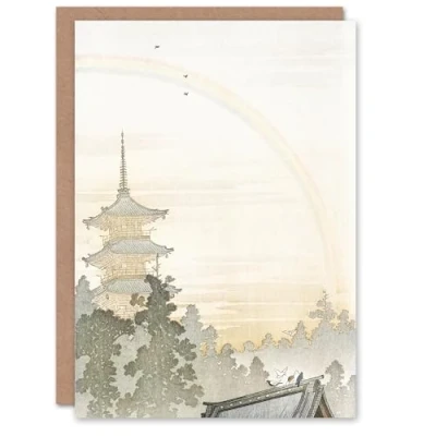 Artery8 Ohara Koson Art Card Pagoda And Rainbow Vintage Japanese
