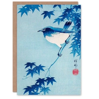Artery8 Ohara Koson Art Card Robin On a Maple Tree Branch