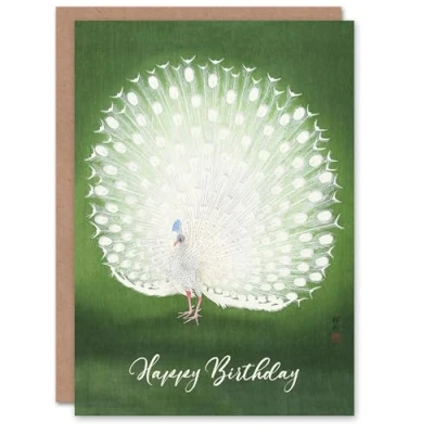 Artery8 Ohara Koson Birthday Card Peacock Bird Vintage Japanese