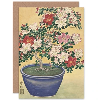 Artery8 Ohara Koson Blooming Azalea In Blue Pot Japanese Fine Art Greeting Card Plus Envelope Blank Inside