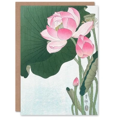 Artery8 Ohara Koson Japanese Art Card Blooming Lotus Flowers
