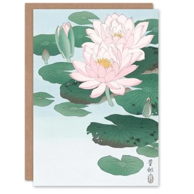 Artery8 Ohara Koson Japanese Art Card Water Lily Pads Pink Flower Bloom