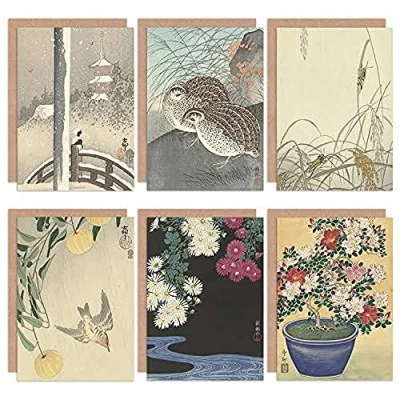 Artery8 Ohara Koson Japanese Azalea Chrysanthemums Cuckoo Grasshoppers Quail Snow Fine Art Greeting Card Pack of 6