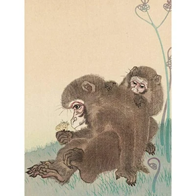 Artery8 Ohara Koson Two Monkeys With Butterfly Painting Premium Wall Art Canvas Print 18X24 Inch