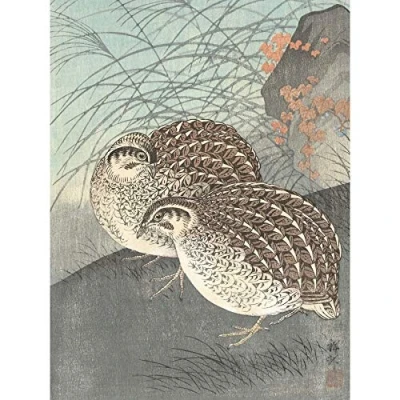Artery8 Ohara Koson Two Quail Full Moon Japanese Painting Premium Wall Art Canvas Print 18X24 Inch