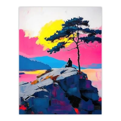 Artery8 Old Man Lone Tree Sunset Coastal Cliff Landscape Living Room Large Wall Art Poster Print Thick Paper 18X24 Inch
