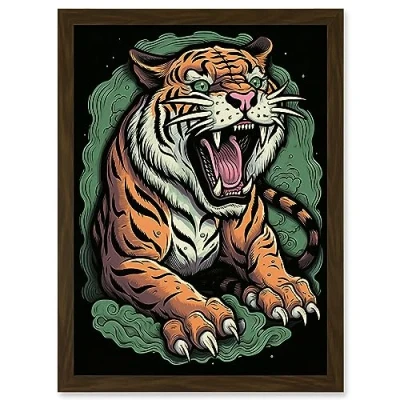 Artery8 Old School USA Tattoo Ink Body Art Ferocious Tiger Rockabilly Americana 50s Artwork Framed A3 Wall Print