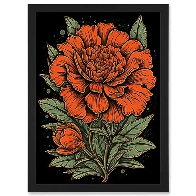 Artery8 Old School USA Tattoo Ink Body Art Marigold Flower Rockabilly Americana 50s Artwork Framed A3 Wall Print