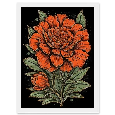 Artery8 Old School USA Tattoo Ink Body Art Marigold Flower Rockabilly Americana 50s Artwork Framed Wall Print A4
