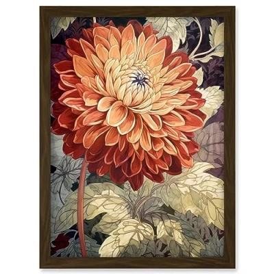 Artery8 Orange Dahlia Flower Watercolour Illustration Artwork Framed A3 Wall Art Print