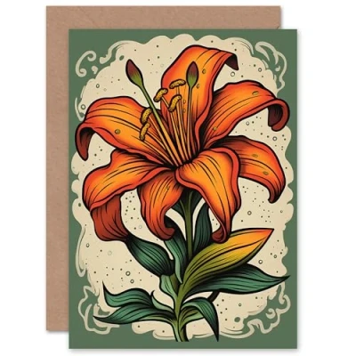 Artery8 Orange Lily Flower for Wife Her Mum Sister Daughter Mom Gran Nan Birthday Thank You Mothers Day Blank Art Greeting Card