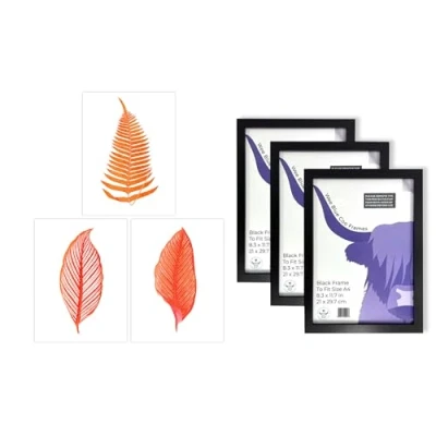 Framed Art Pack: This top-tier collection features 3 high quality, unframed wall art prints and 3 engineered wood frames. Each print is printed onto thick, luxurious art paper. Size: Each elegant piece is A4 sized and measures 29.7 x 21 cm (8.3 x 11.7 inches). Care & Quality: Please note that some assembly is required and that there may be some variation in the colour of the on-screen image and the actual item received. This is subject to the brightness and contrast of your screen settings. Versatility: These prints provide an aesthetic uplift to any space - be it living rooms, home offices, bedrooms, bathrooms, kitchens, and even B&Bs or traditional office environments. With our wide range of art styles from abstract to modern, classical, and more, there's something to cater to every art enthusiast's taste. Ideal Gift: Our art prints make a perfect, thoughtful gift for occasions like birthdays, Mothers Day, Christmas, Anniversary, or a housewarming present.